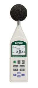 Instrumento electrónico portátil que mide la intensidad del sonido en decibelios